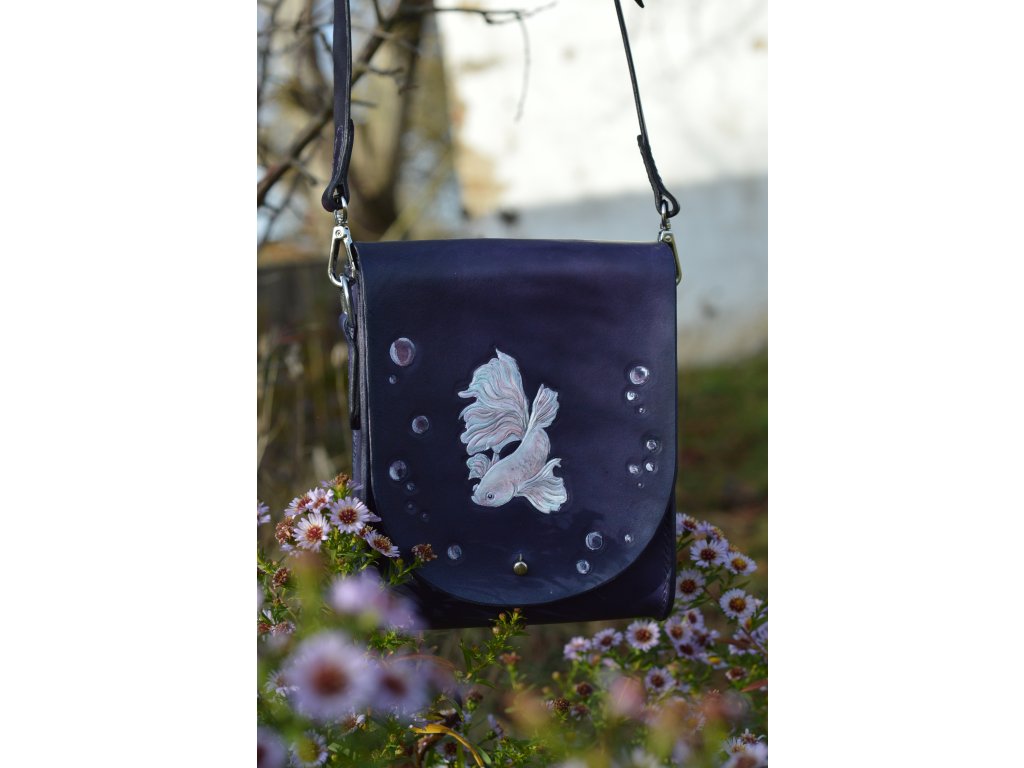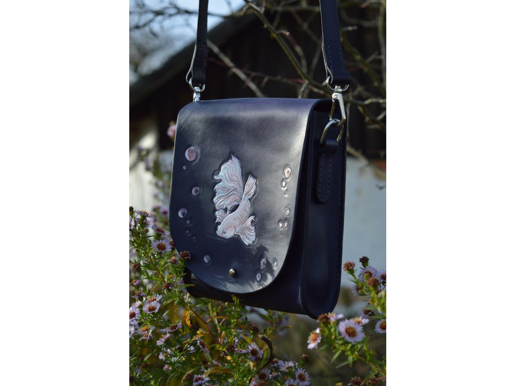 Kožená crossbody brašna z mé dílny. Rozměrově má asi 18x22x5cm, od prvního říznutí až po poslední steh je tvořená ručně, v mé maličké dílně.
