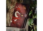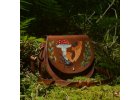 Všechny kožené výrobky tvořím z přírodní hovězí hlazenice. Tu následně barvím a řežu, vyřezávám, modeluji a maluji motivy, šiji. Veškeré šití je ruční, nepoužívám žádné stroje. Každý takový kus je originál, který strávil pod mýma rukama mnoho hodin, od prvního návrhu, až po finální ošetření, aby pak dělal radost co nejdéle. <3