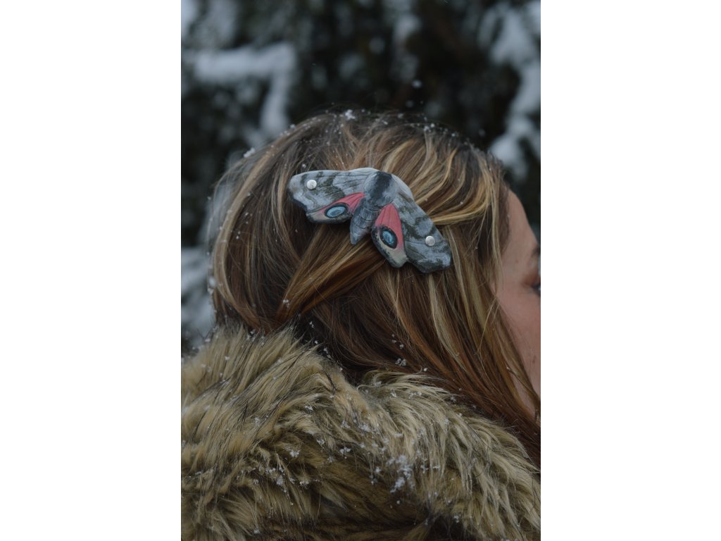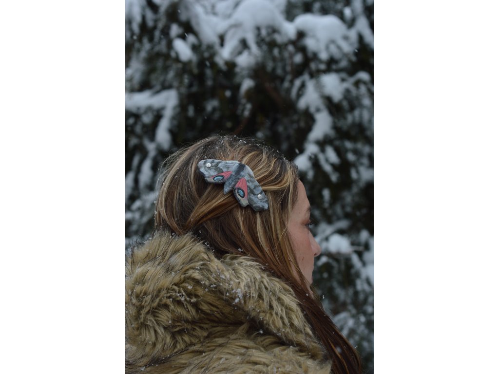 Kožená spona do vlasů, malovaná a rytá. Velikost kovové spony 7cm, celá spona je tak o fous větší. :-)