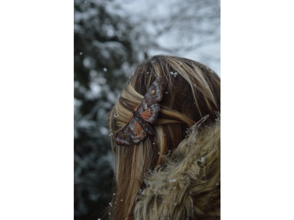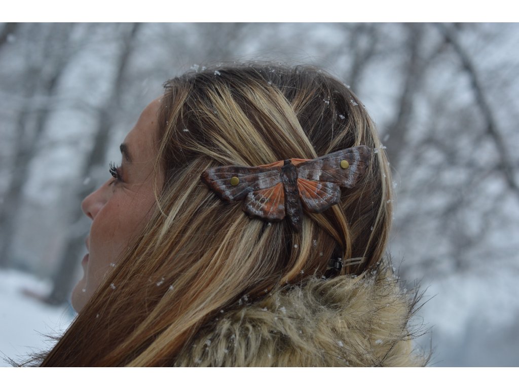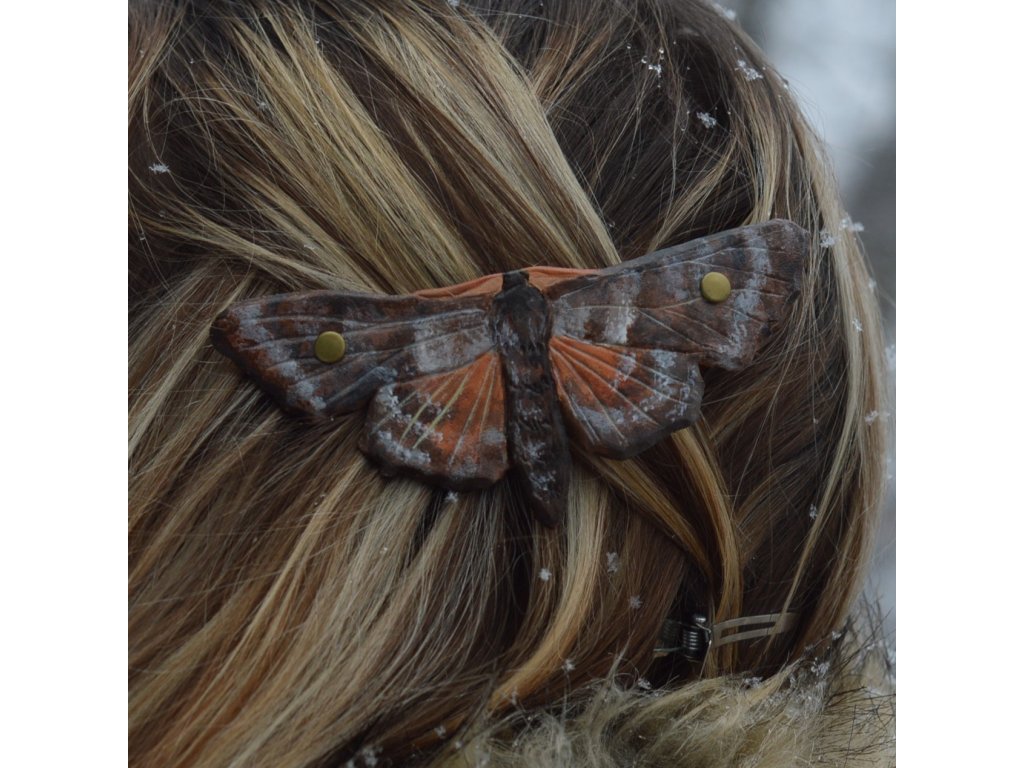 Kožená spona do vlasů, malovaná a rytá. Velikost kovové spony 7cm, celá spona je tak o fous větší. :-)