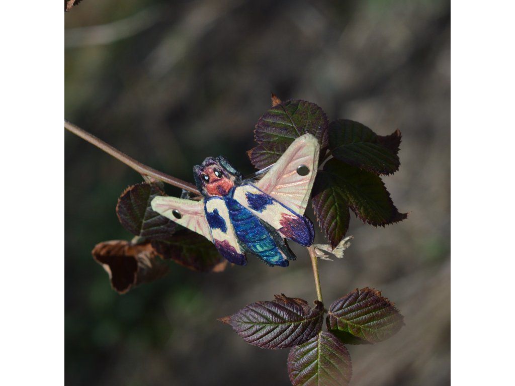 Malá spona do vlasů na kovovém základu 5cm. Inspirována exotickým broukem Chrysochroa buqueti. Malován třpytivými barvami, takže při změnách světla lehounce mění svůj vzhled. :-)