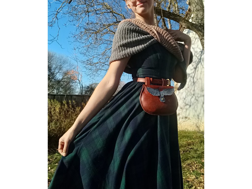 Tašvice - brašnička k pasu, včetně ladícího pásku. S motivem červenky, vhodná ke každodennímu nošení, na fantasy akce, do města i do lesa.